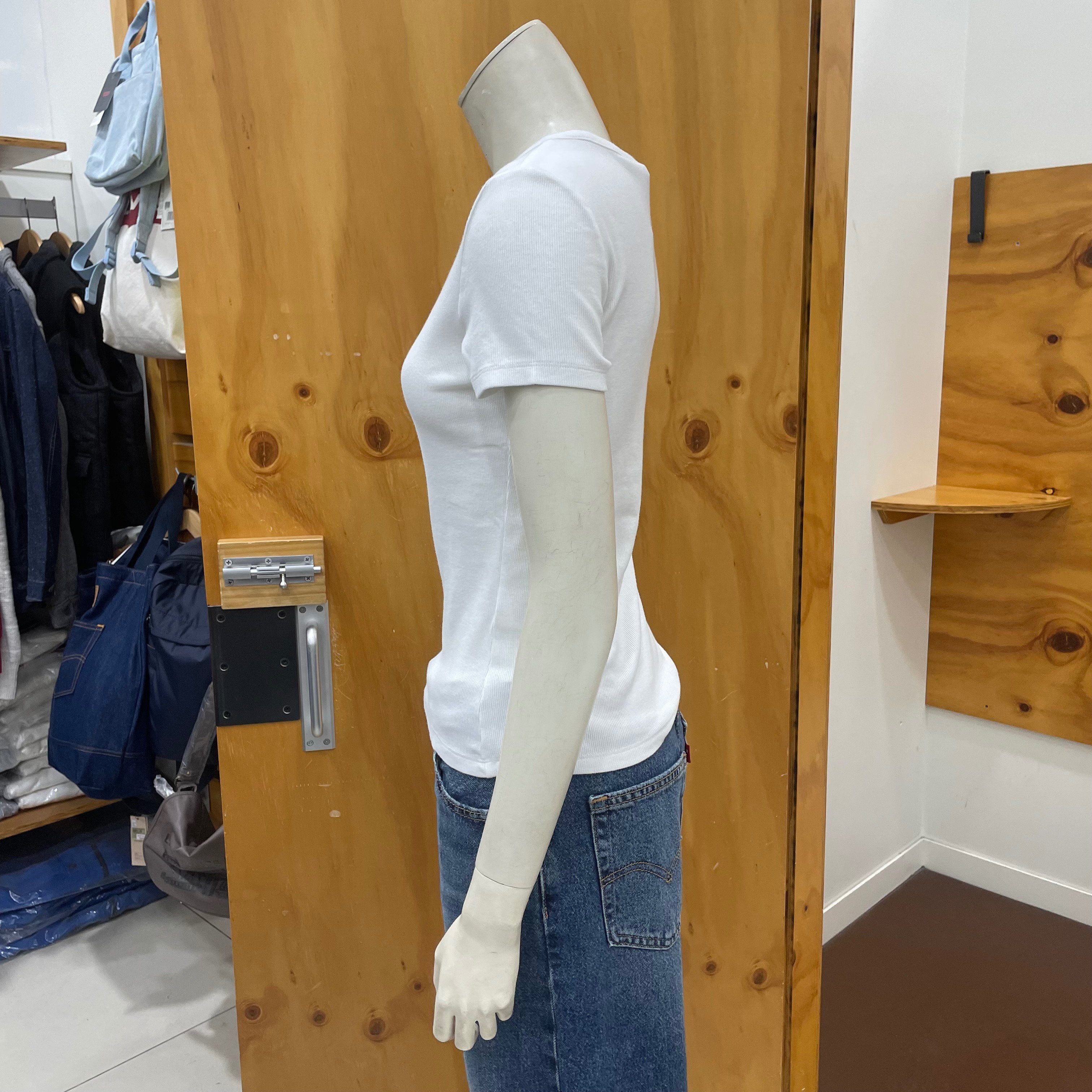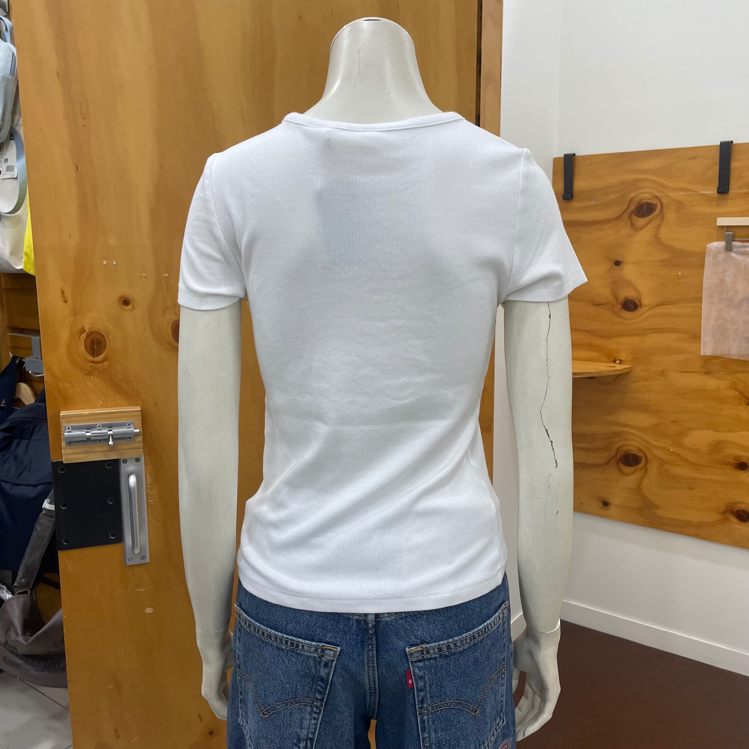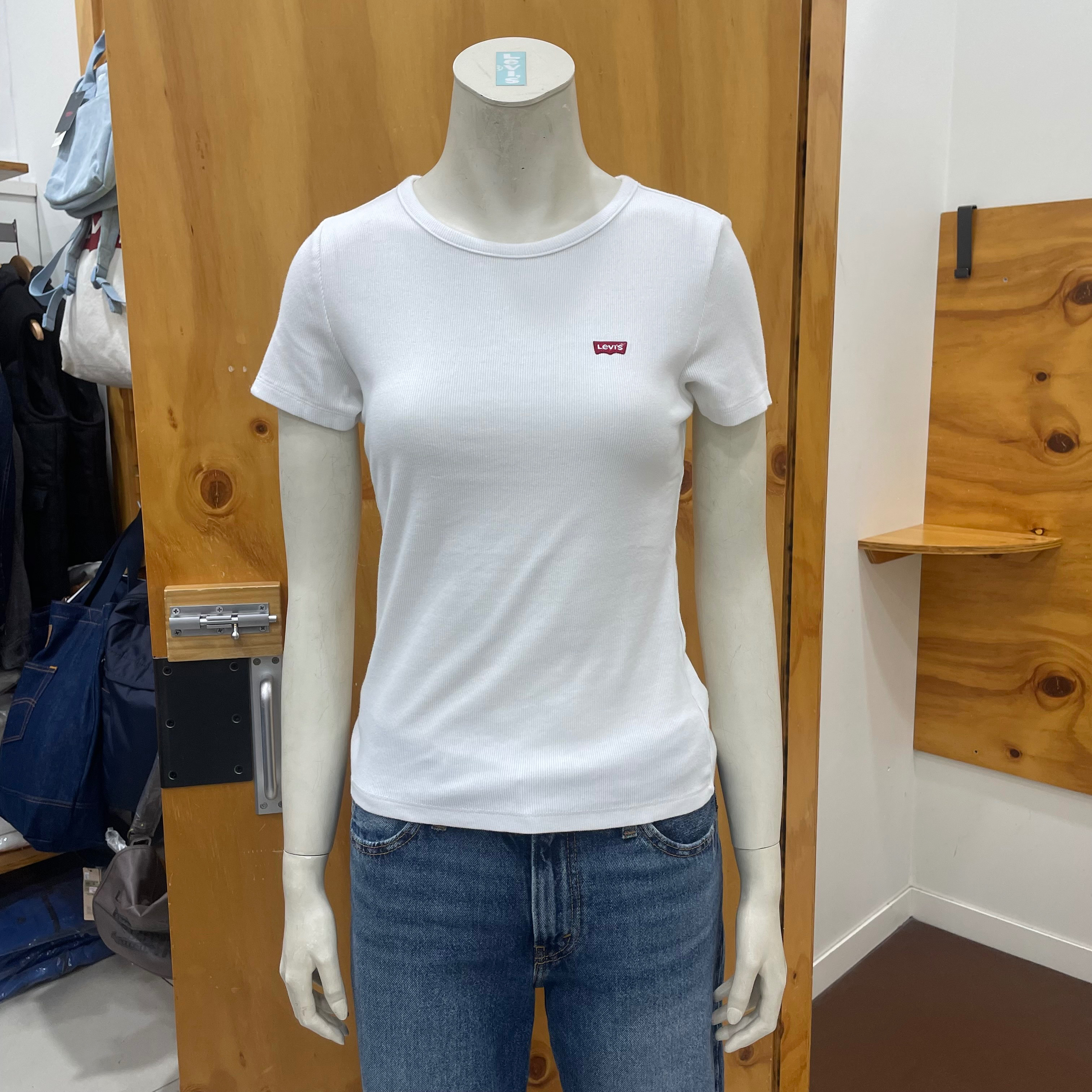 클래식한 크루 네크라인과 슬림 핏으로 디자인 했으며 시그니처인 레드 탭과 스몰로고로 나온 골지 반팔 티셔츠입니다 마네킹 사이즈는 M 90 사이즈입니다