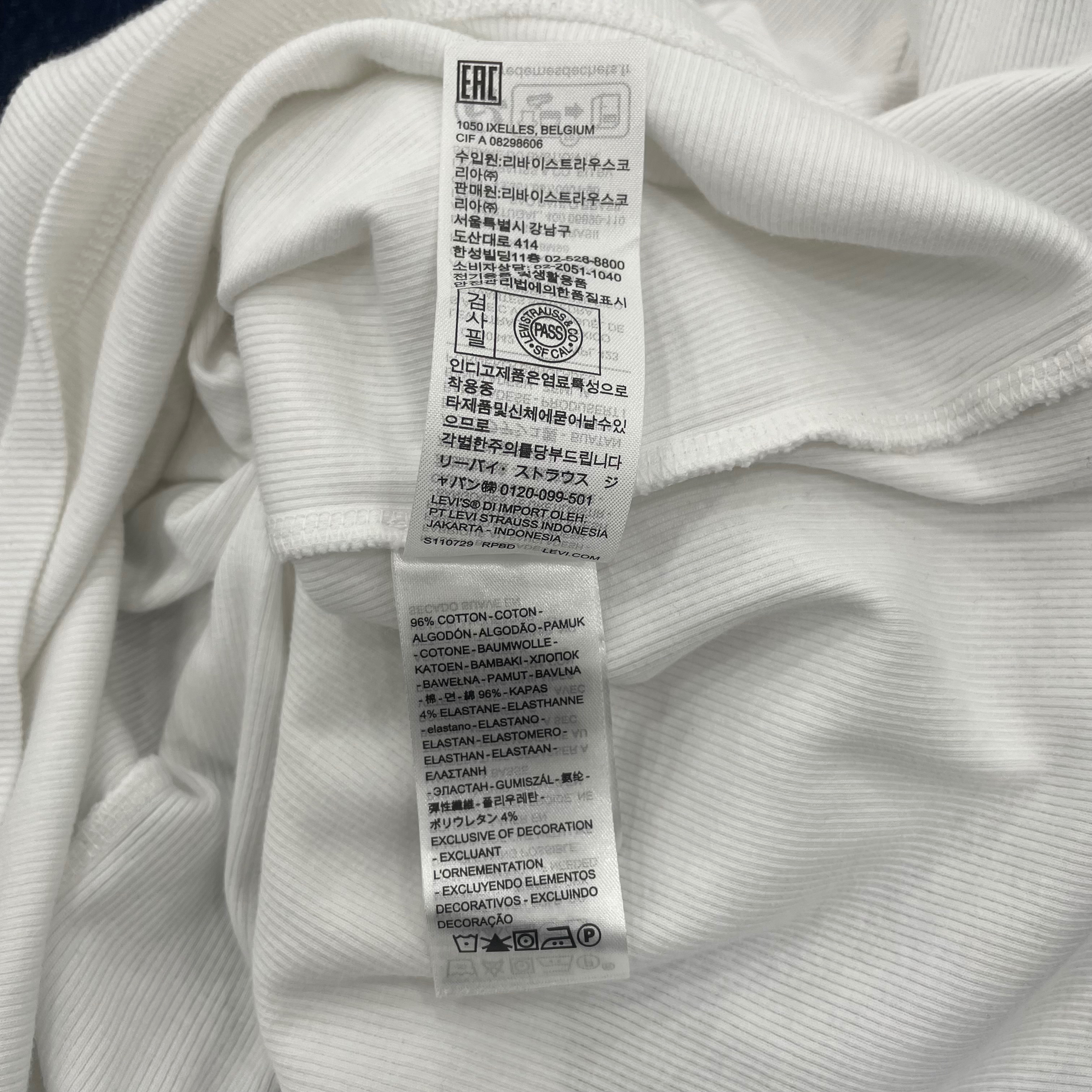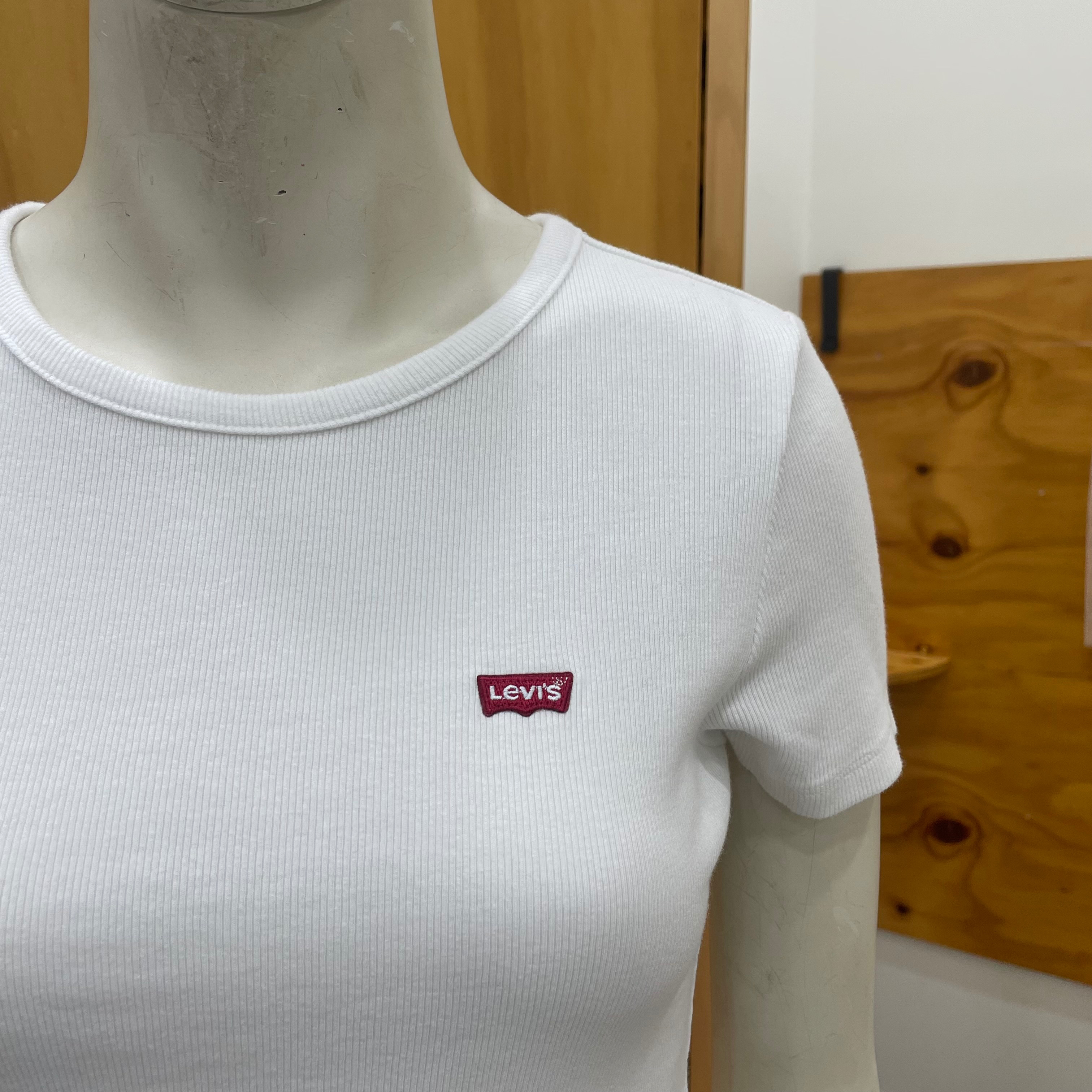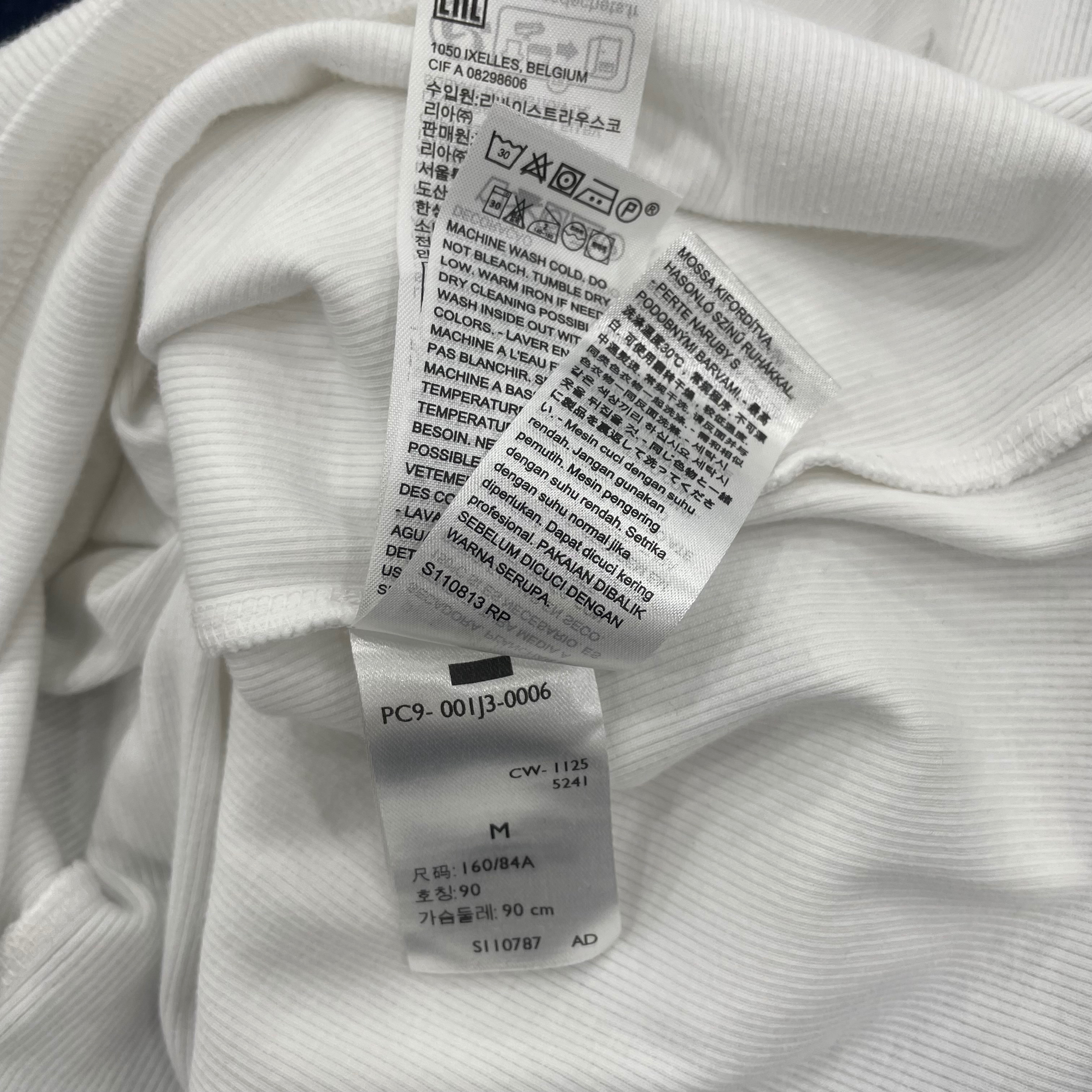 클래식한 크루 네크라인과 슬림 핏으로 디자인 했으며 시그니처인 레드 탭과 스몰로고로 나온 골지 반팔 티셔츠입니다 마네킹 사이즈는 M 90 사이즈입니다