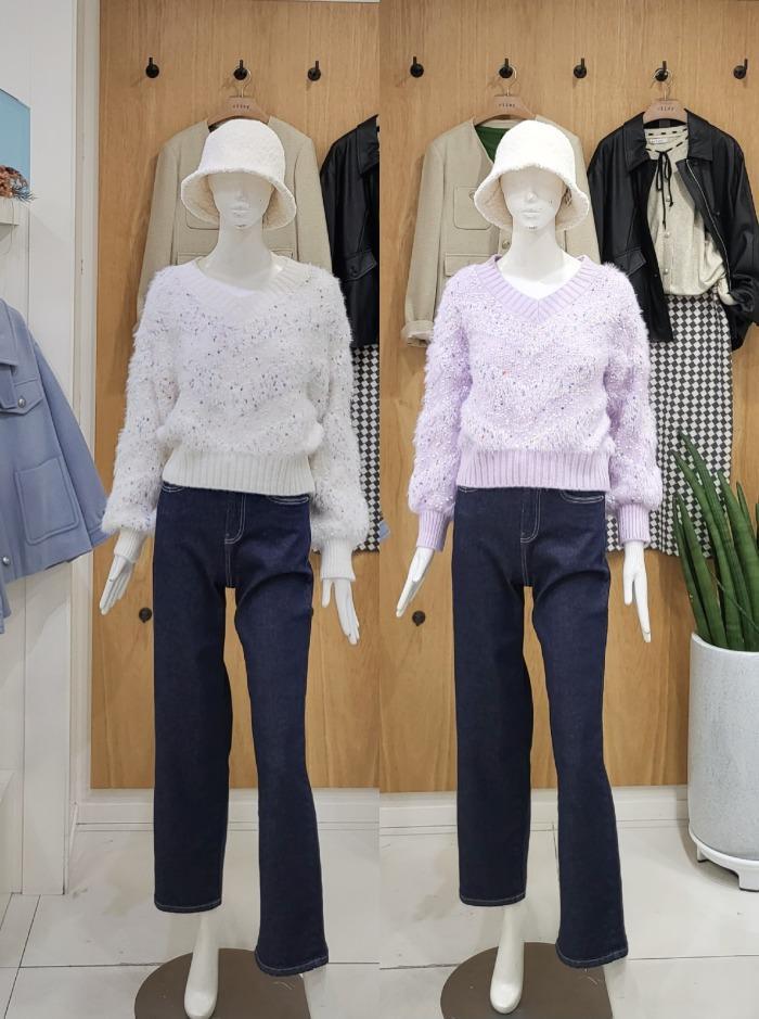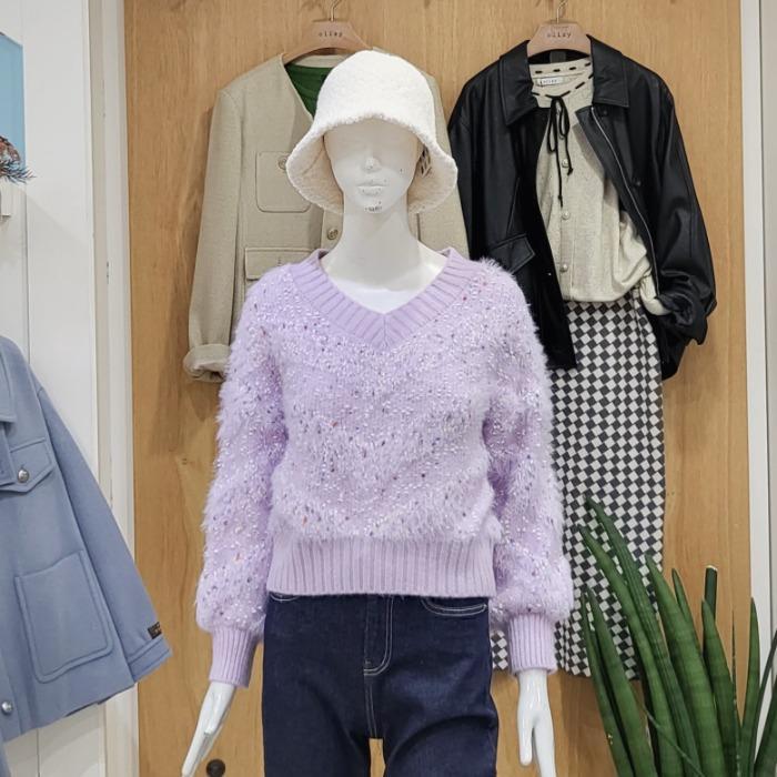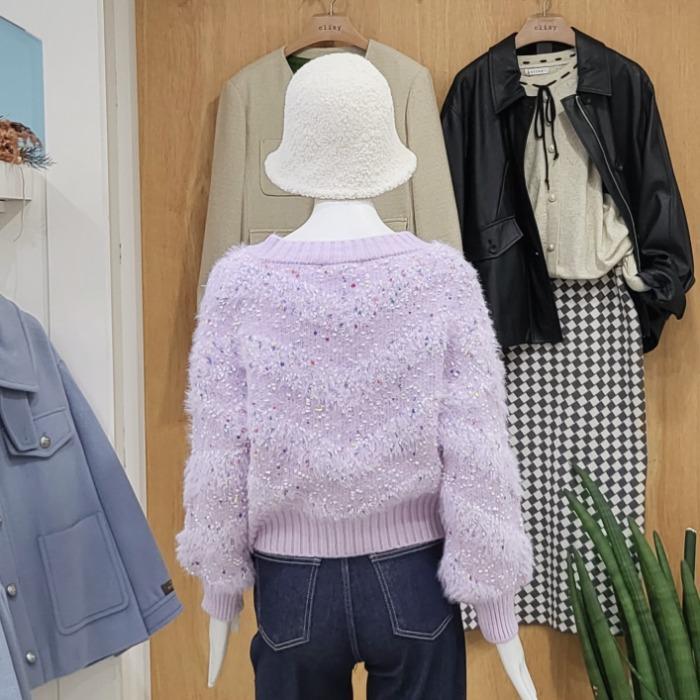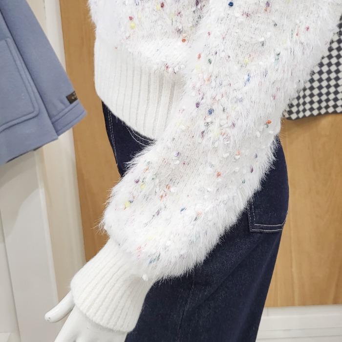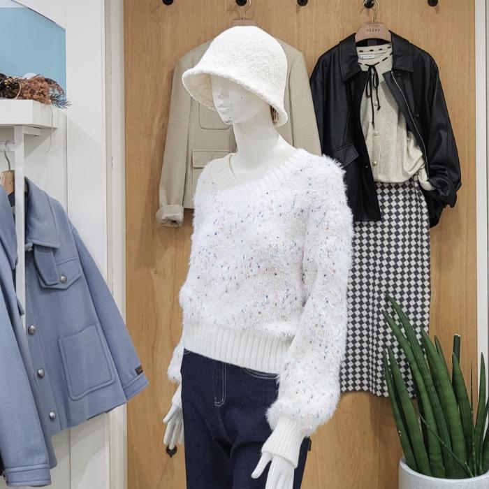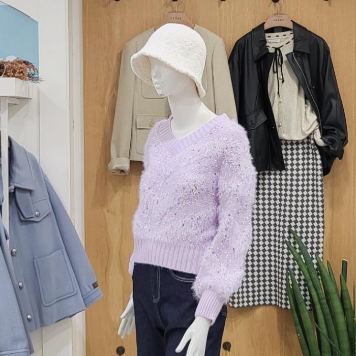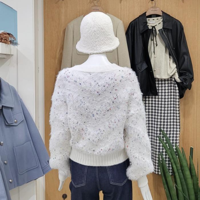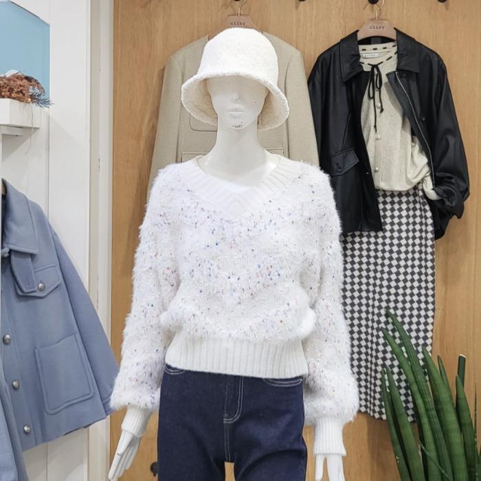 브이넥 폼폼 헤어리 크롭 니트 입니다 [ 대동백화점 클리지 ] 를 검색하시면