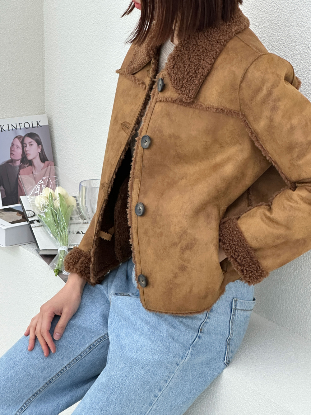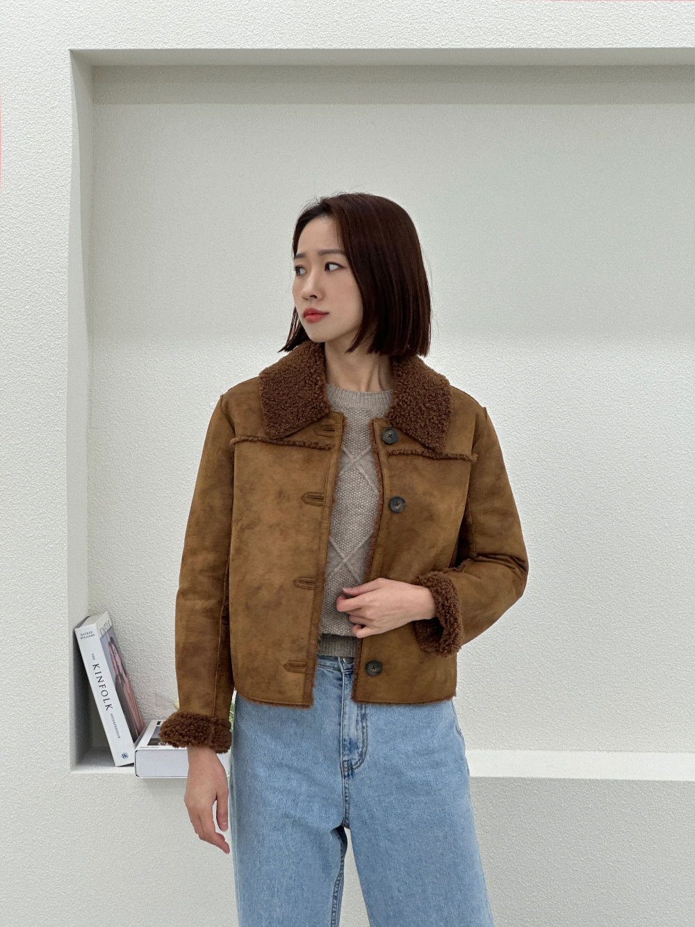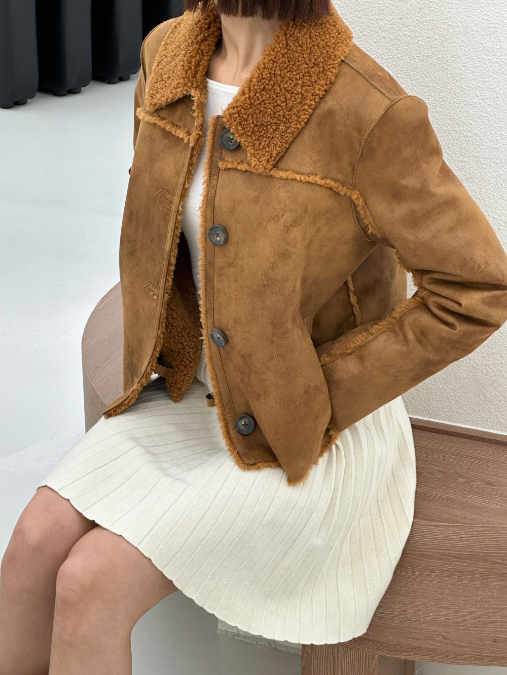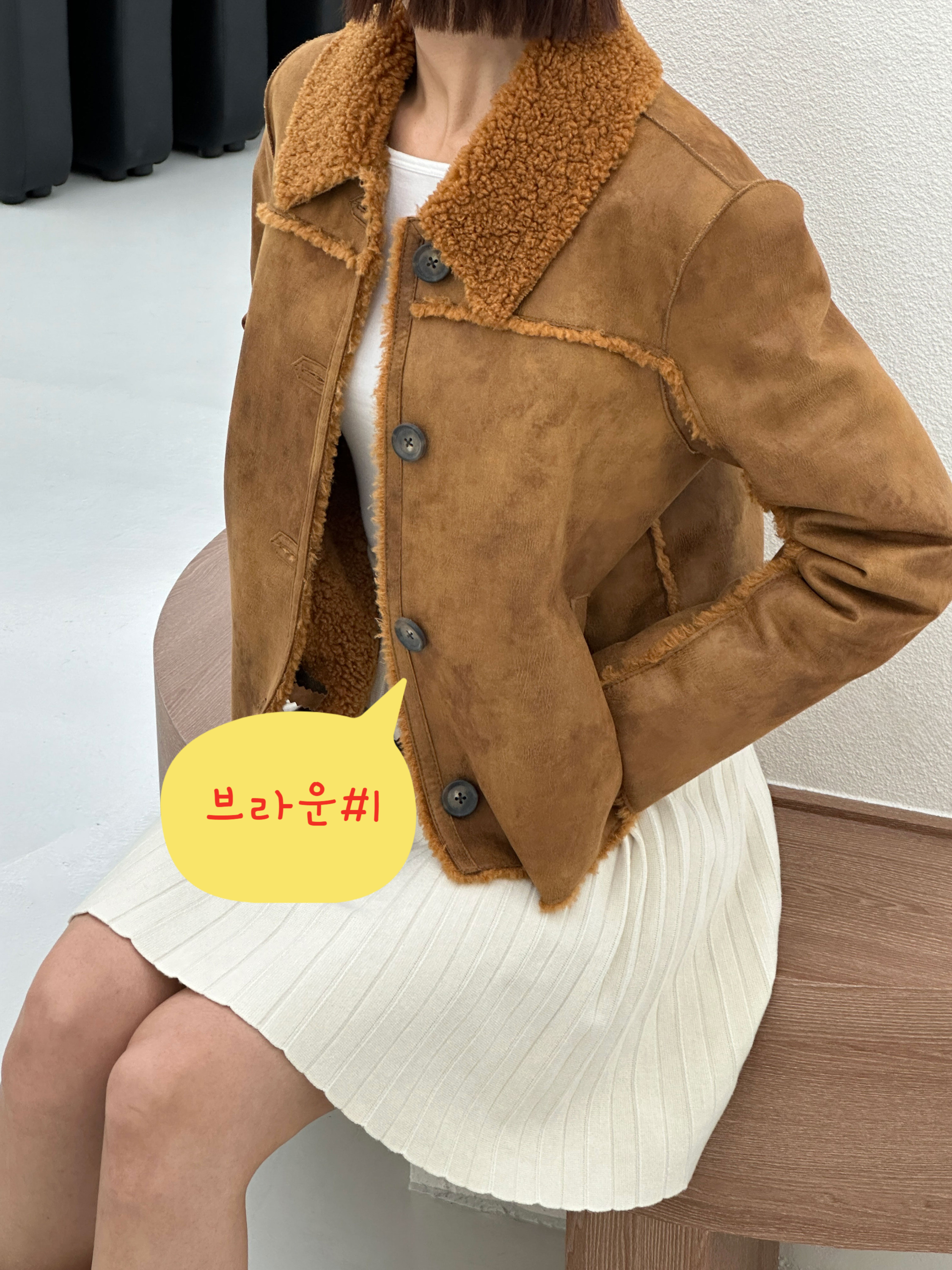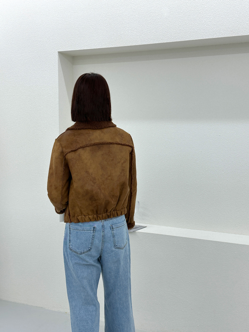 페이크퍼 뽀글이 카라 레더 자켓 크롭 무스탕