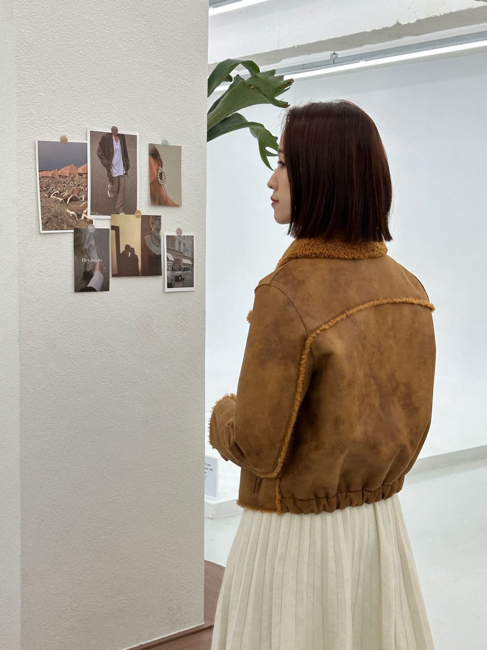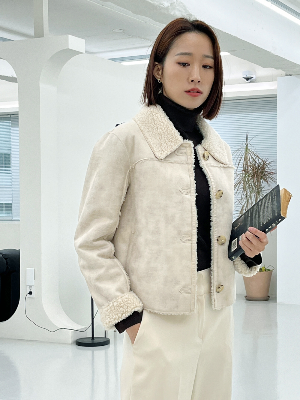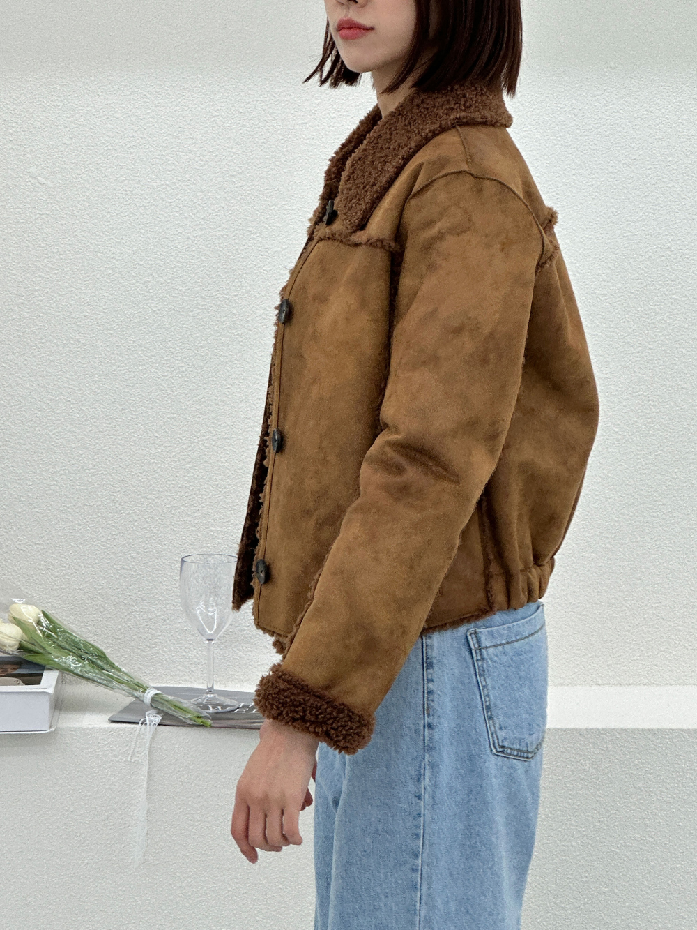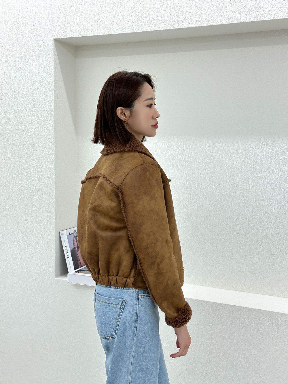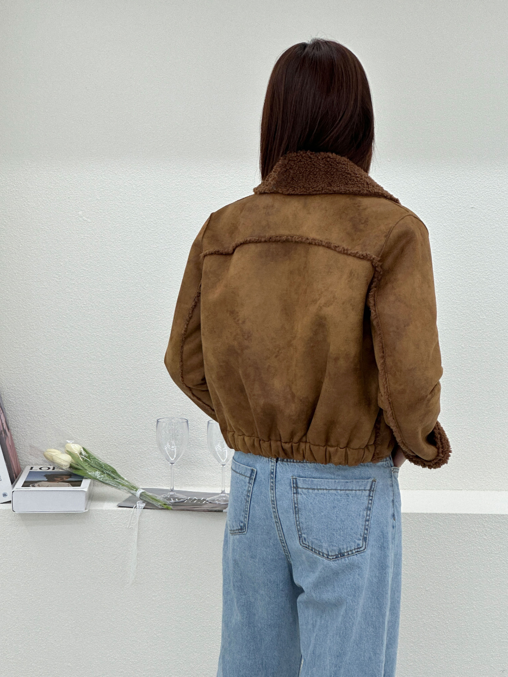 페이크퍼 뽀글이 카라 레더 자켓 크롭 무스탕