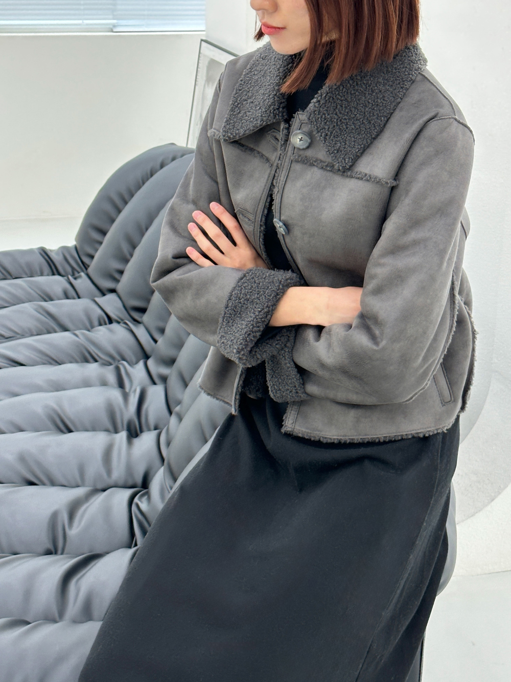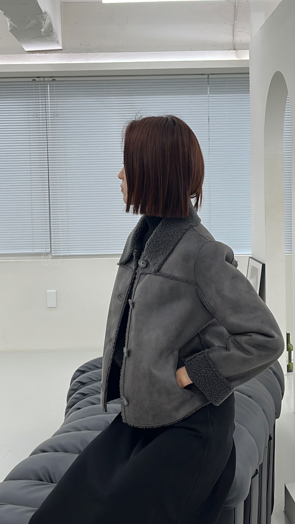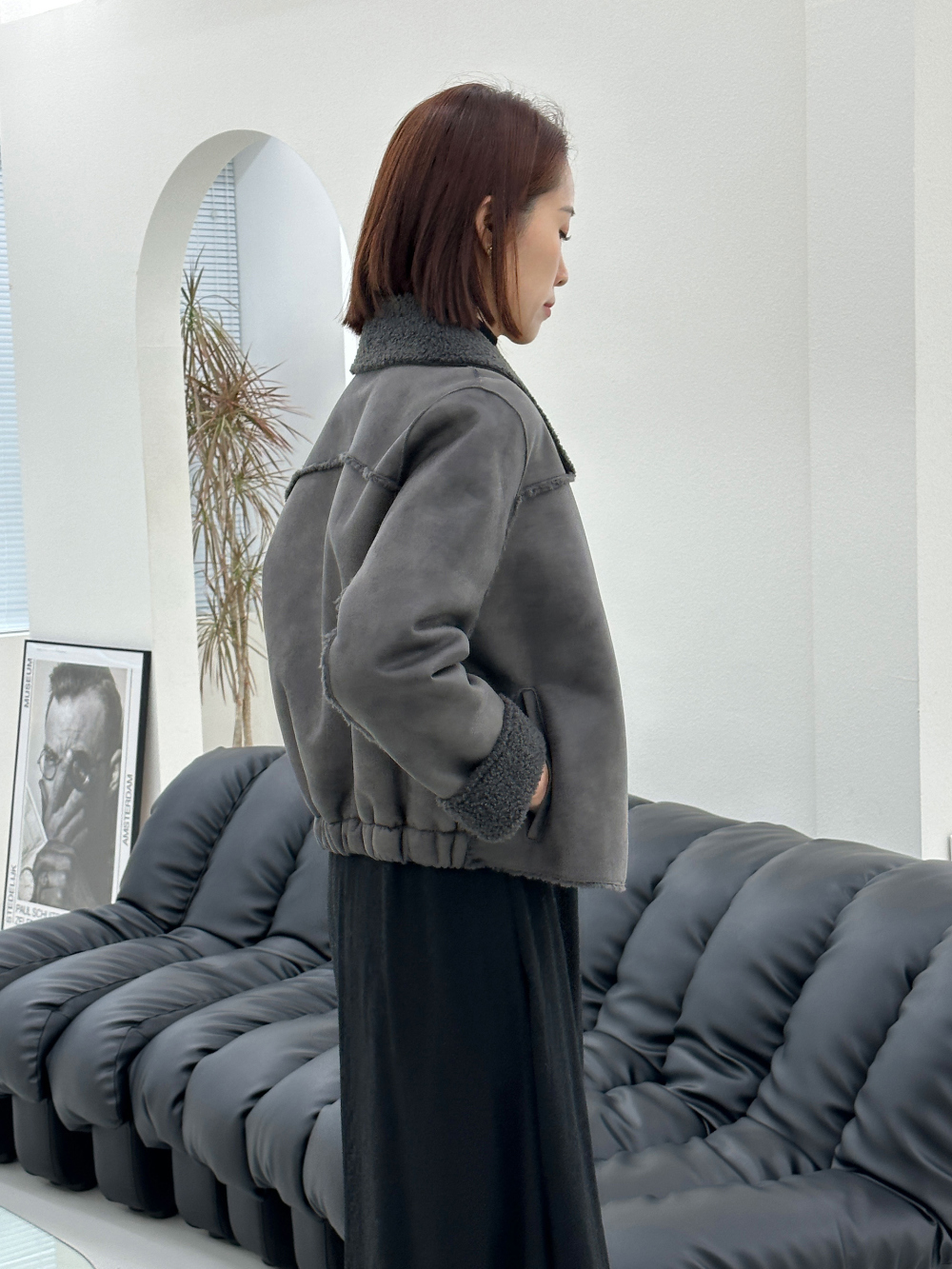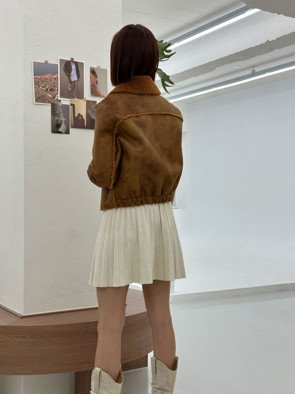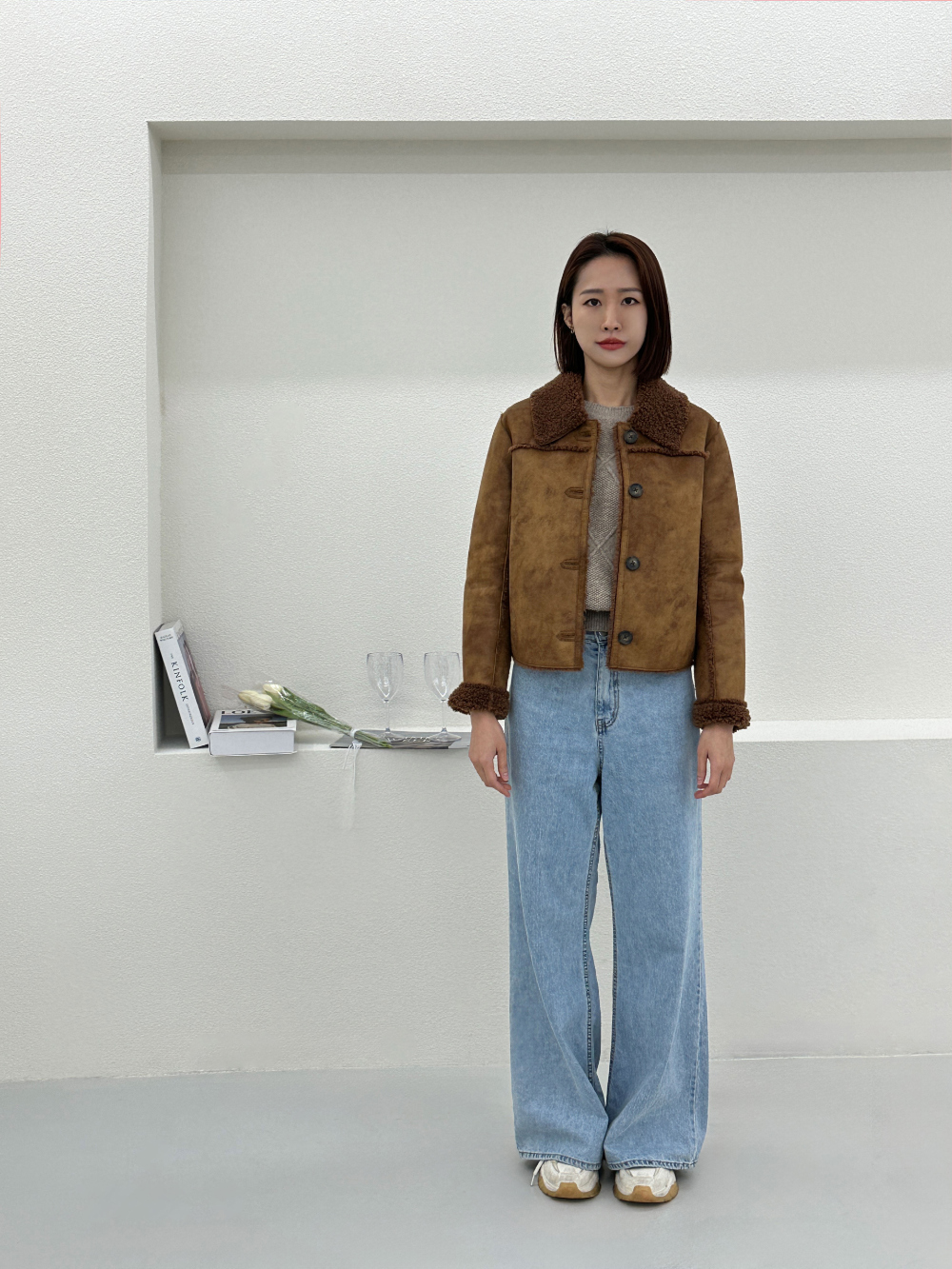 페이크퍼 뽀글이 카라 레더 자켓 크롭 무스탕