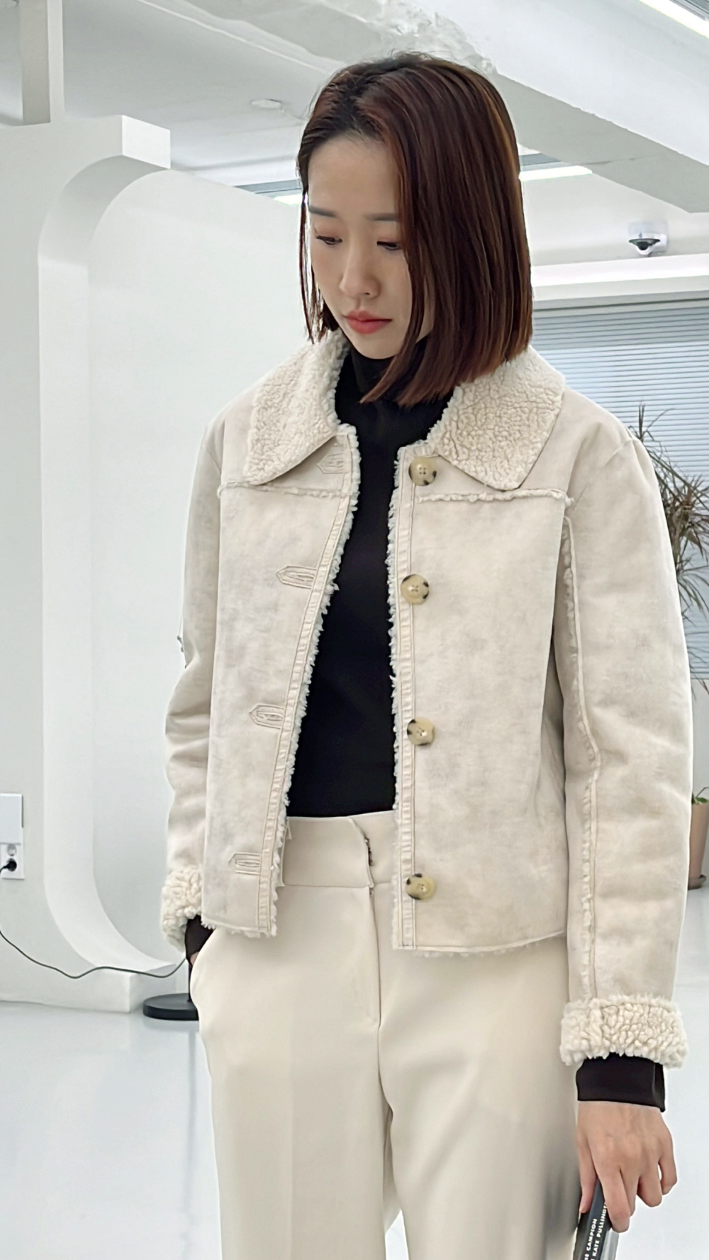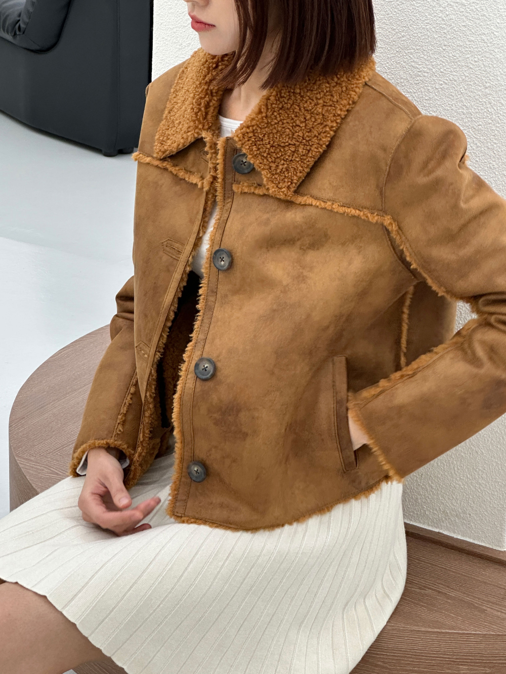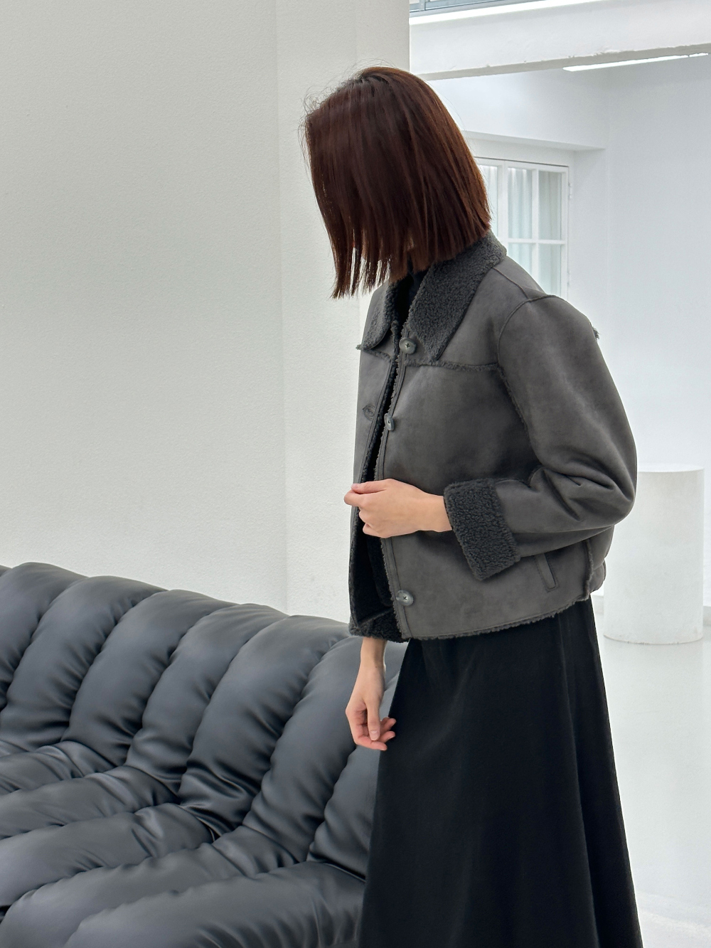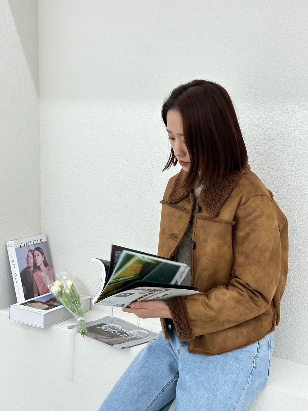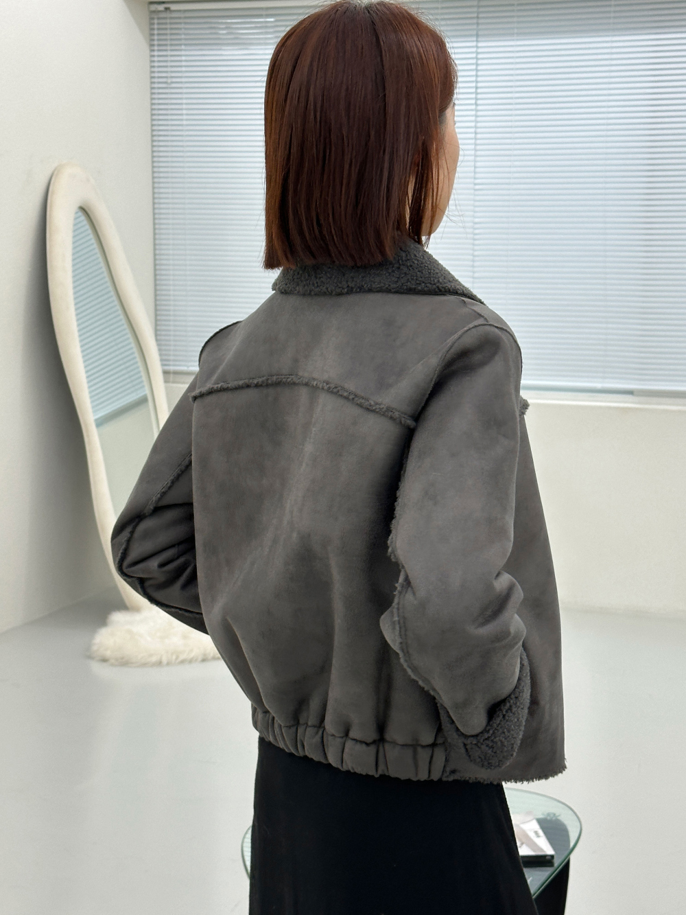 페이크퍼 뽀글이 카라 레더 자켓 크롭 무스탕