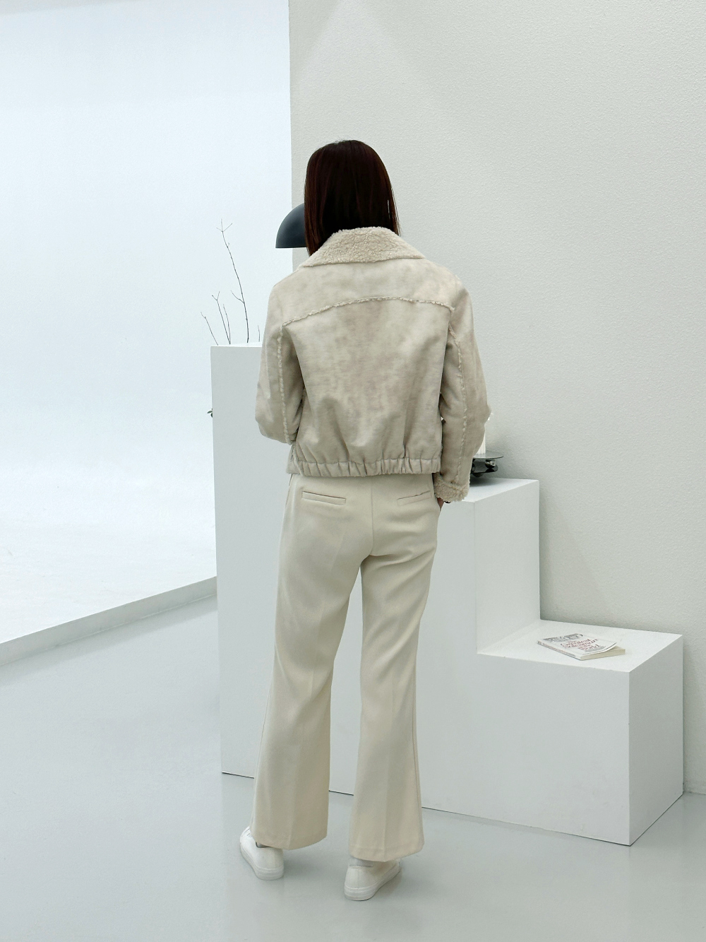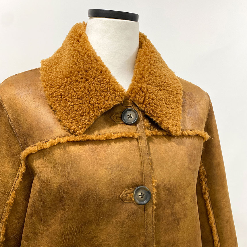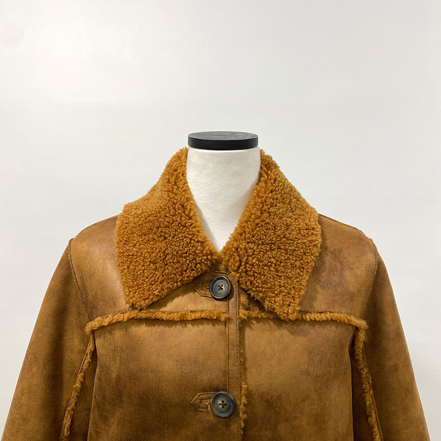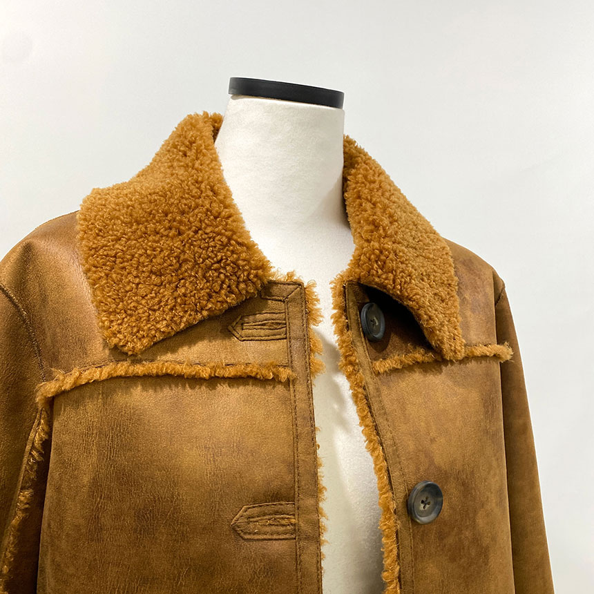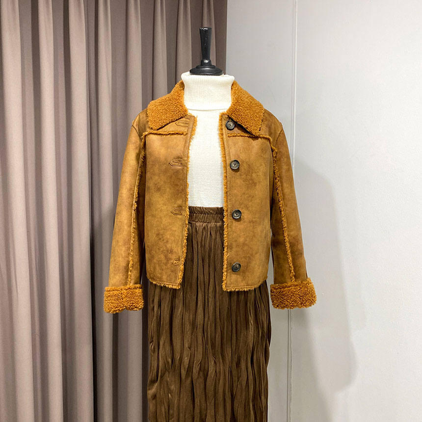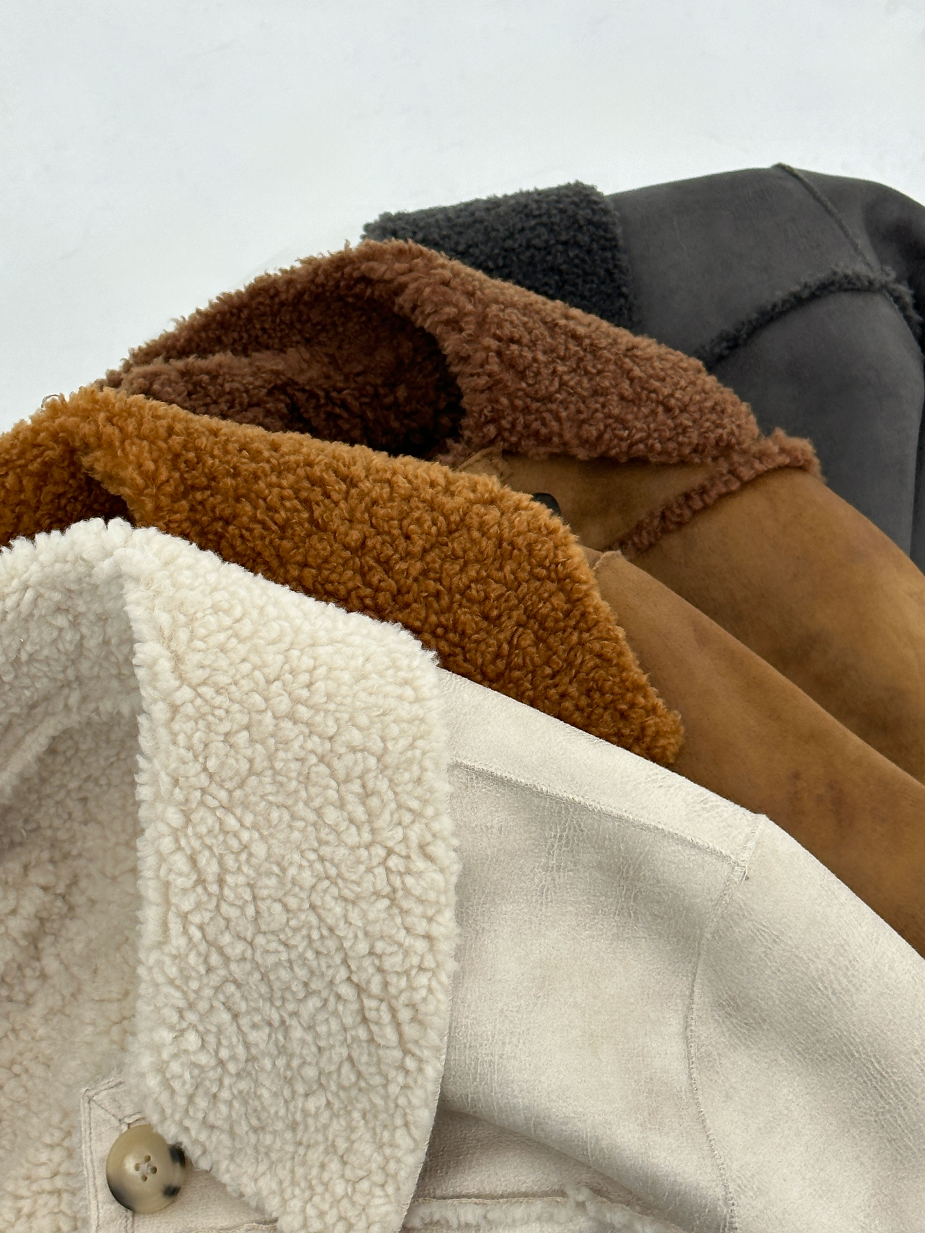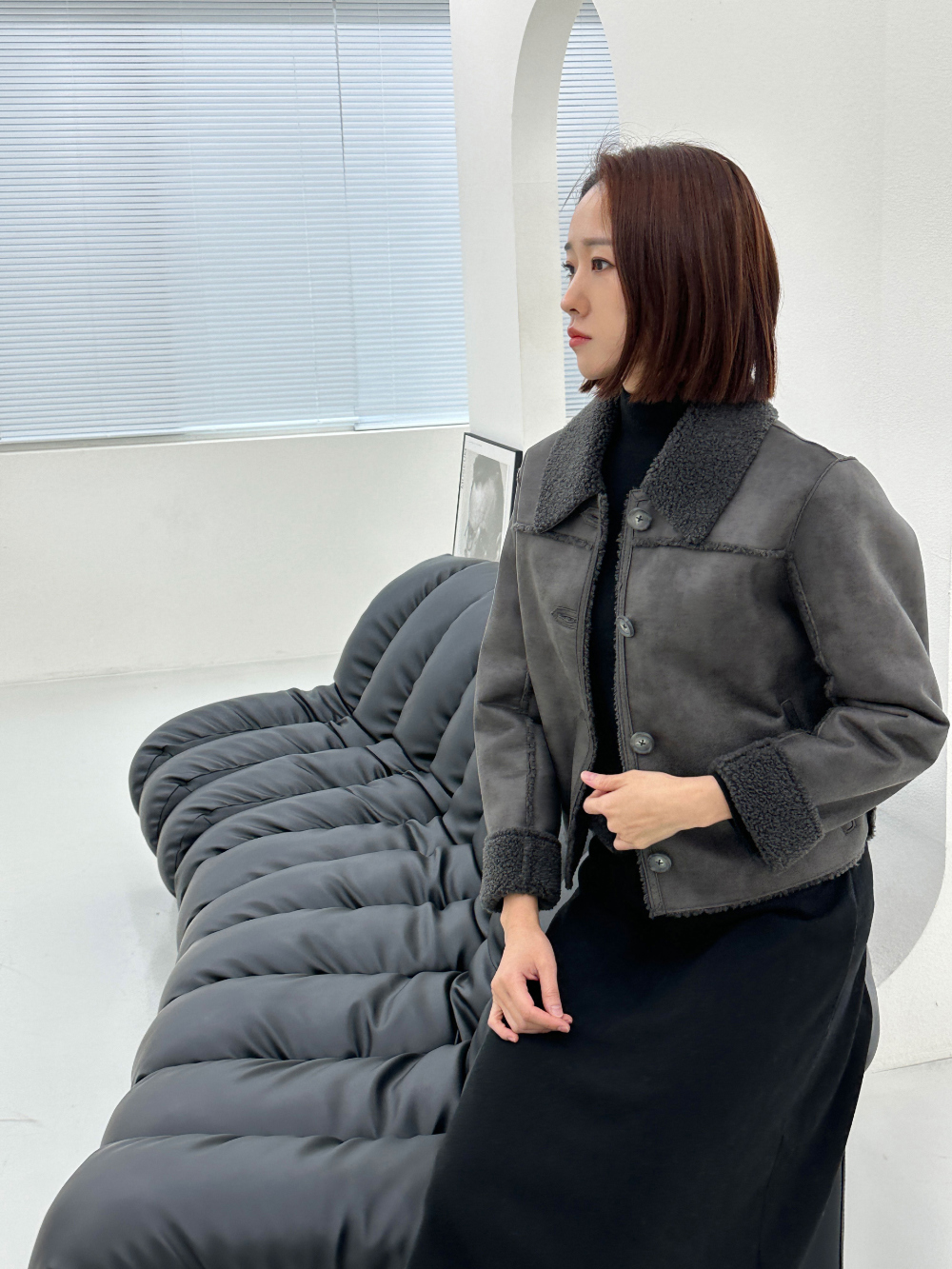 페이크퍼 뽀글이 카라 레더 자켓 크롭 무스탕