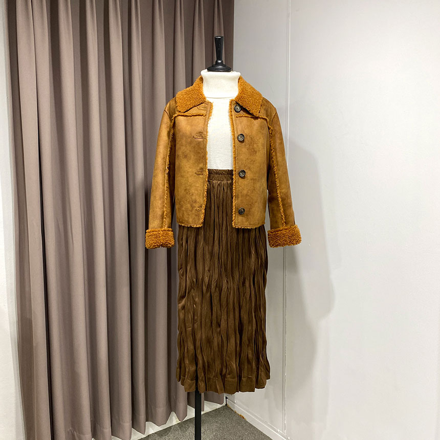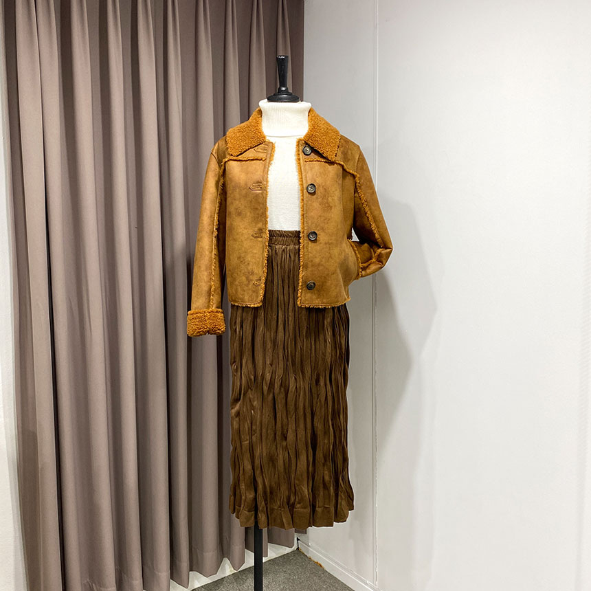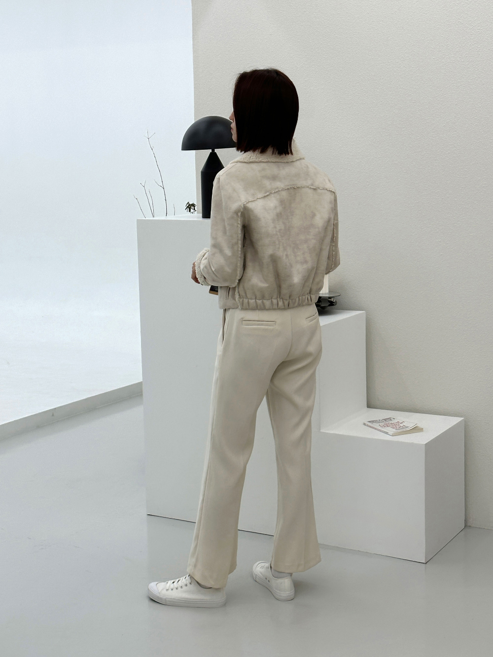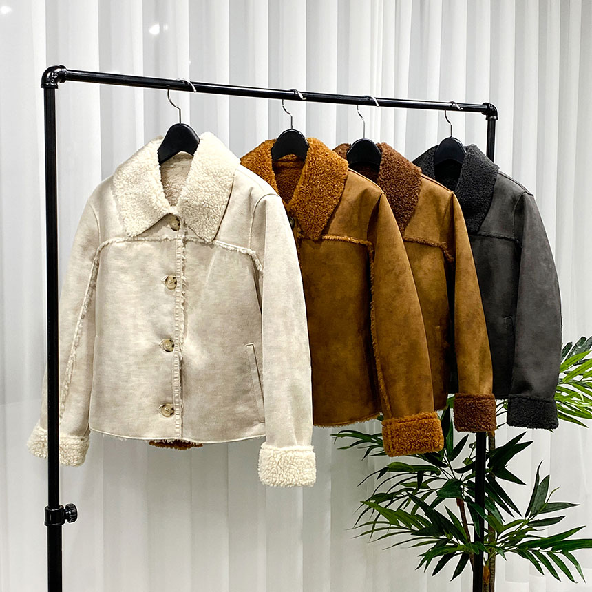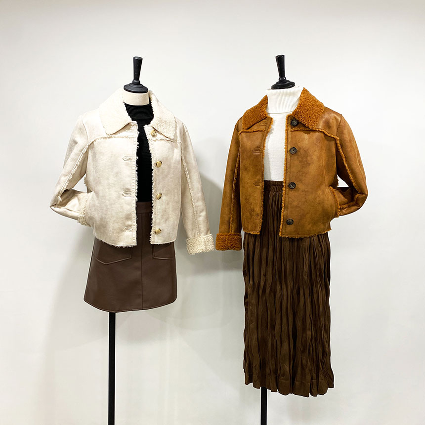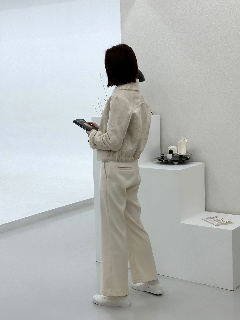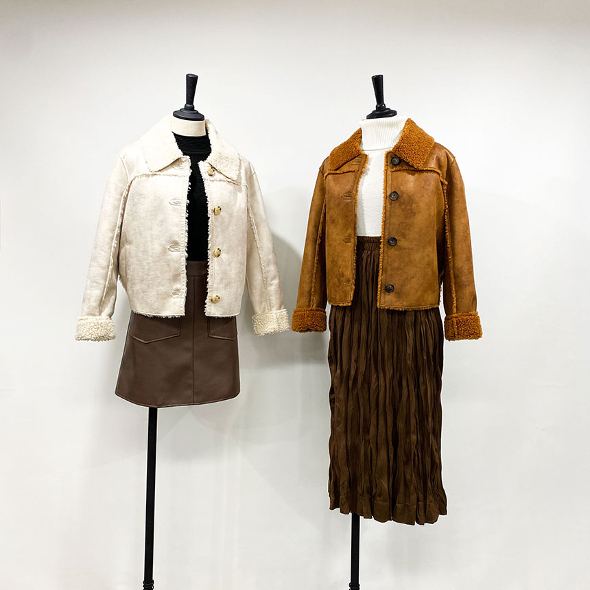 페이크퍼 뽀글이 카라 레더 자켓 크롭 무스탕