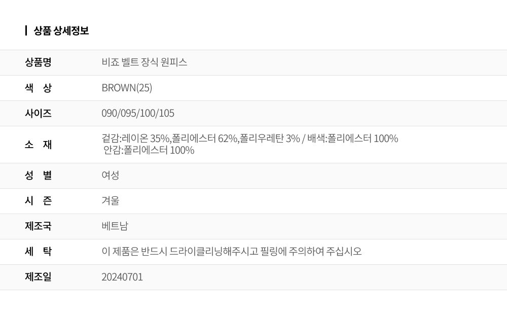주의사항 이 제품은 반드시 드라이클리닝해주시고 필링에 주의하여 주십시오