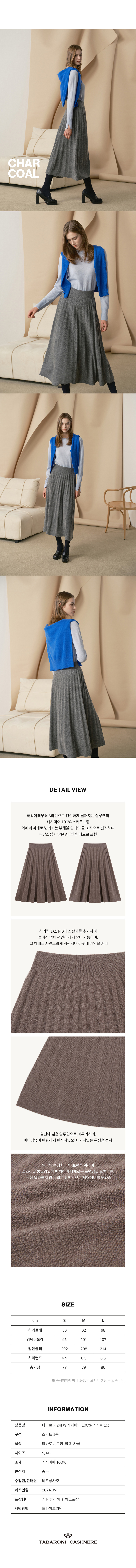 타바로니 캐시미어 24FW 캐시미어 100% 여성 A라인 스커트