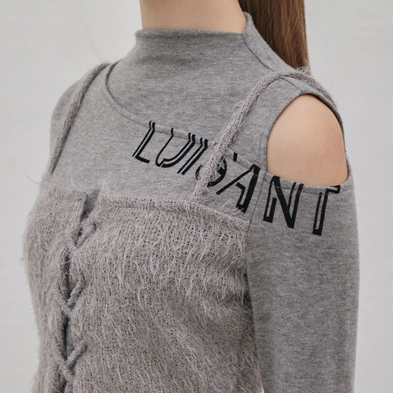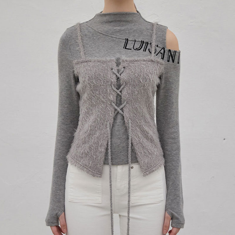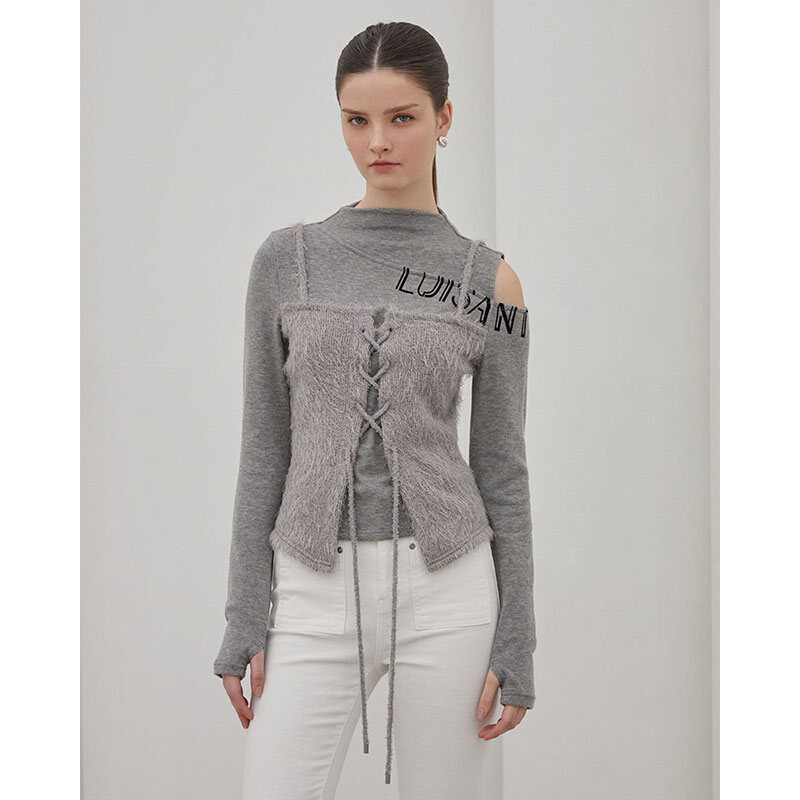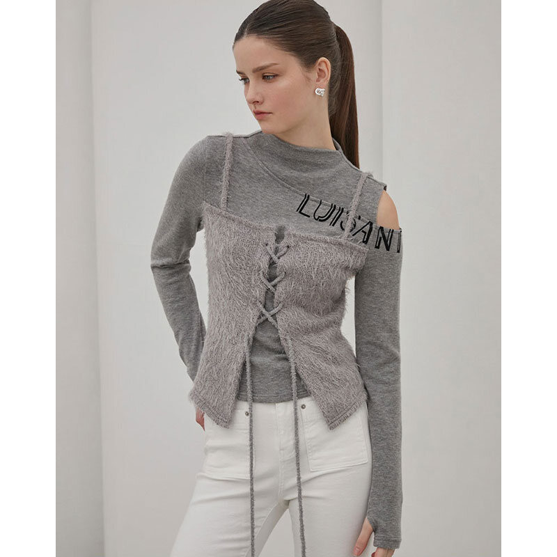 ER4CL663레터링포인트레이스업소재믹스슬림티셔츠_DJ